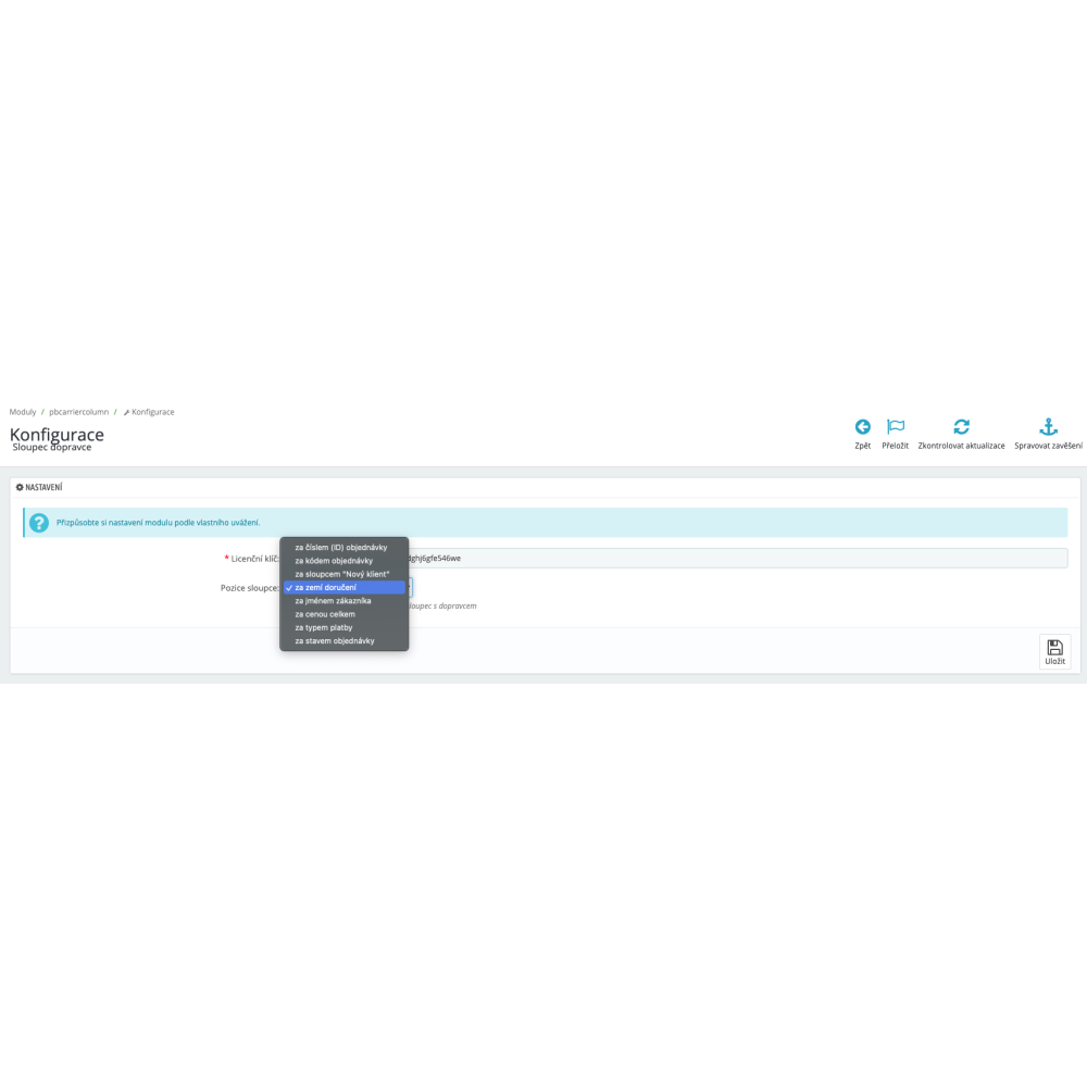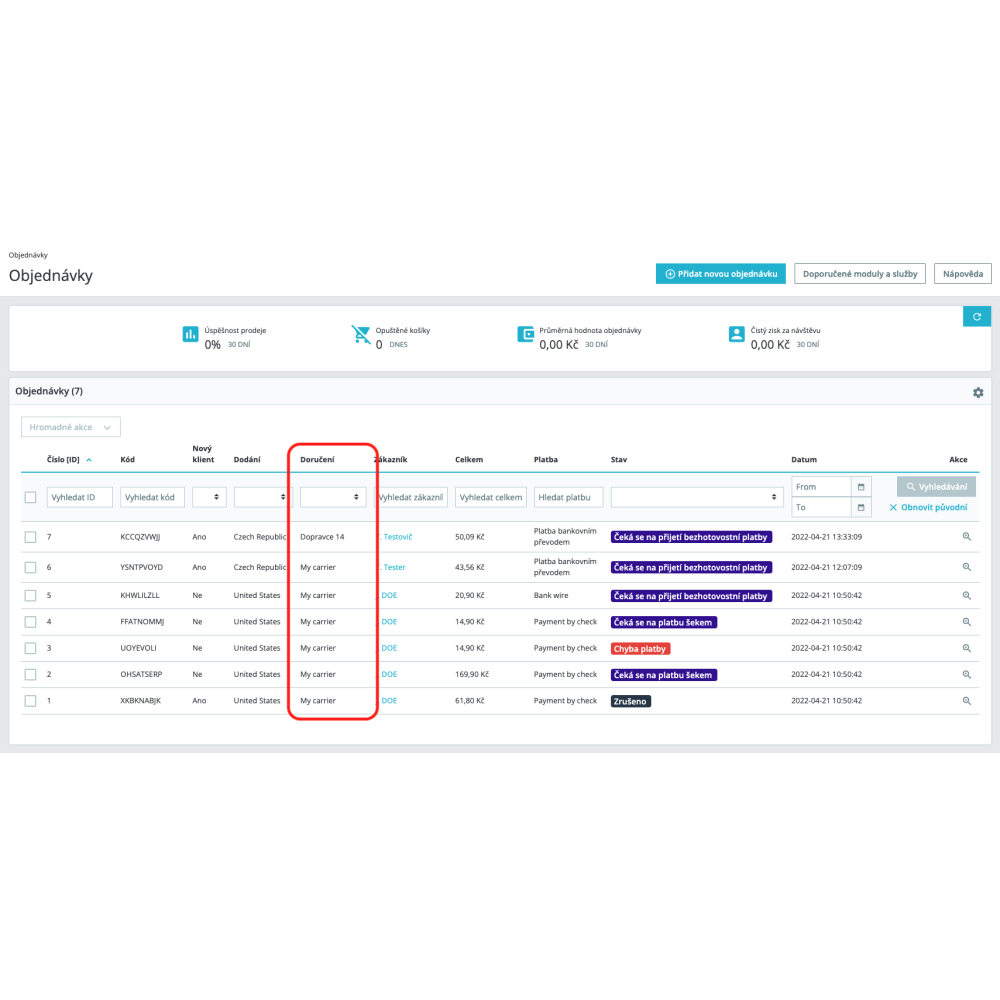 Tento modul přidá sloupec s dopravcem do vaší administrace objednávek.