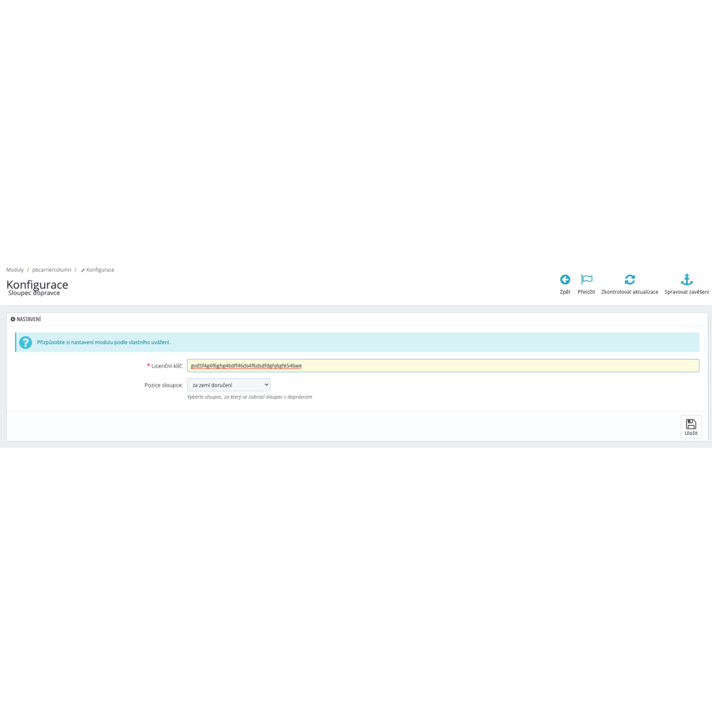 Ve sloupci lze filtrovat jednotlivé dopravce. Sloupec lze v konfiguraci modulu řadit na konkrétní pozici v tabulce.